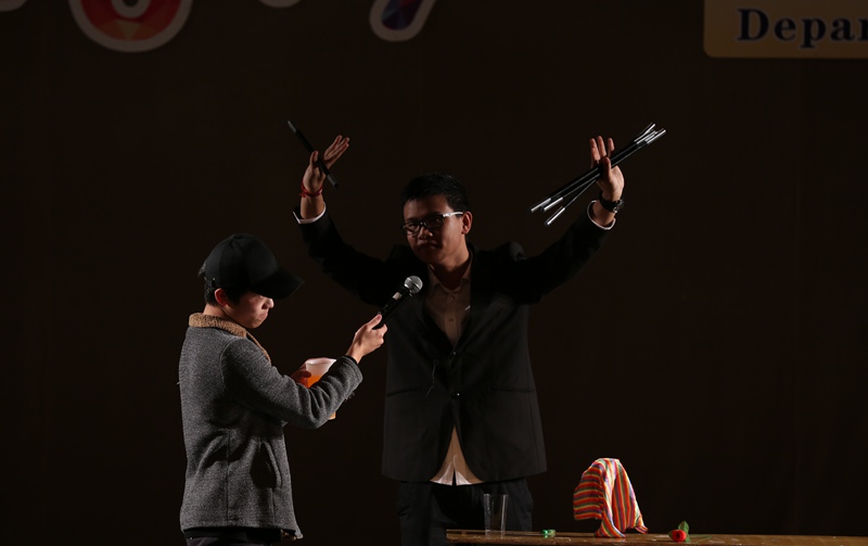 本场晚会形式多样,动静结合,精彩不断,高潮迭起,为在场观众献上了一场精彩绝伦的视听盛宴。值得一提的是还增加了现场互动抽奖的环节。晚会充分展示了外语系同学们敢于创新的精神风貌以及突破自我的勇气。
