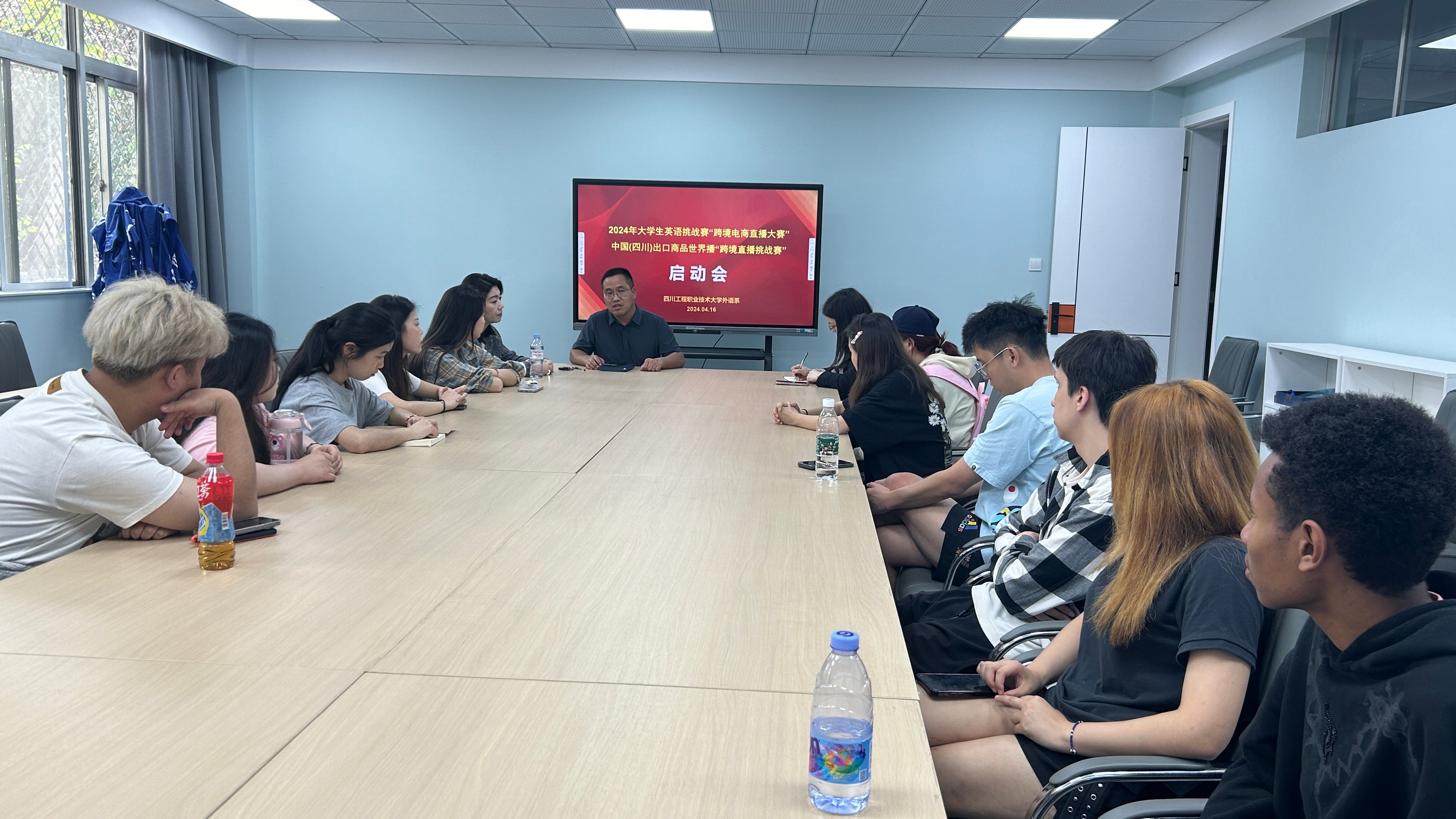 2024年4月16日,新利网上登陆外语系在国际交流合作中心会议室召开了2024年大学生英语挑战赛“跨境电商直播大赛”和中国(四川)出口商品世界播“跨境直播挑战赛”启动会。会议由外语系张志友主任主持,“能工巧匠”专职教练杨君老师,赛事指导人员何玥老师、钟敏老师,2023年赛事获奖选手和2024年备赛选手们参加了会议。
