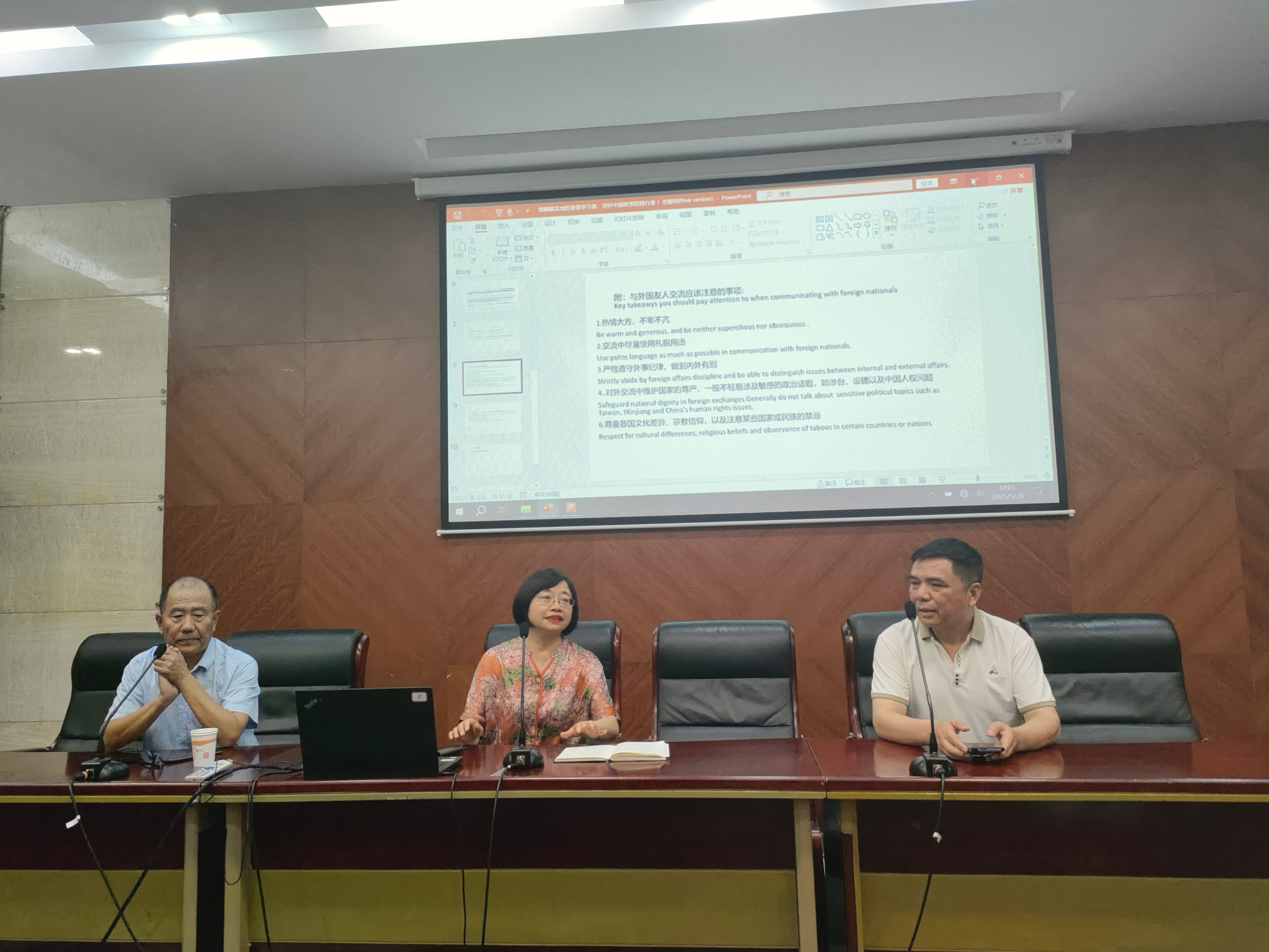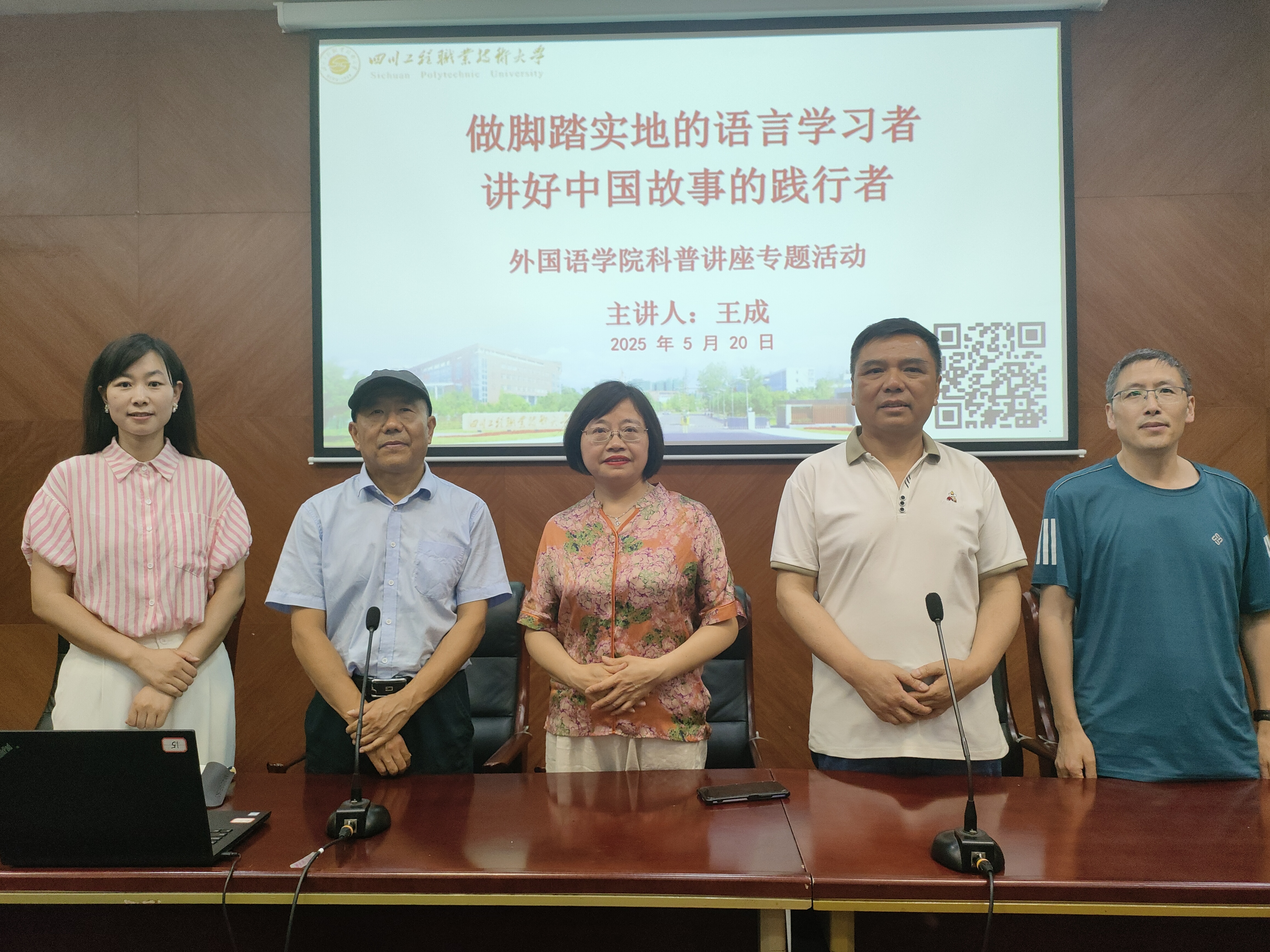 2025年5月20日下午,外国语学院在学校图书馆107会议室成功举办了一场主题为“做脚踏实地的语言学习者、讲好中国故事的践行者”的讲座。本次讲座由外国语学院副院长何冬梅主持,邀请了德阳市高级中学教师王成老师担任主讲人,外国语学院全院教师和部分学生代表前来聆听。