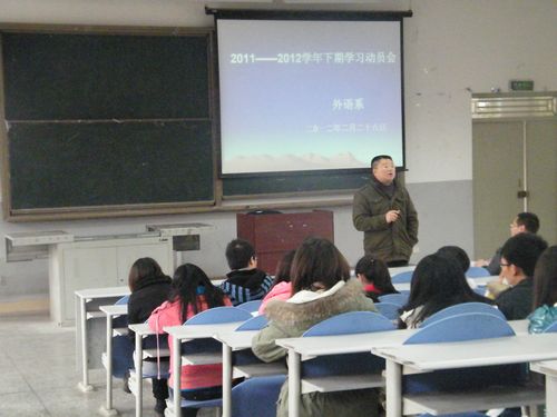 为帮助大一、大二各专业的学子明确专业发展要求和专业学习目标,增强同学们的学习动力,2月28日下午外语系在3教109教室开展了新学期学习动员大会,会议由外语系张主任和教研室主任谢林老师主讲。