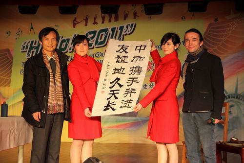 中国传统文化展示环节尽显中国艺术文化的博大精深——杨院长现场挥毫展示了中国传统书法,外语系付幼桦老师演奏的京剧曲牌、邹和成老师的口琴独奏、学生马思路演奏的二胡名曲《赛马》赢得全场的惊呼声与掌声,并将晚会推向高潮;