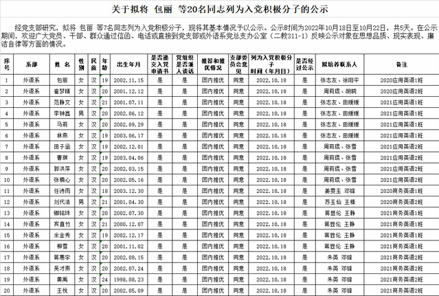 关于拟将 包丽 等20名同志列为入党积极分子的公示