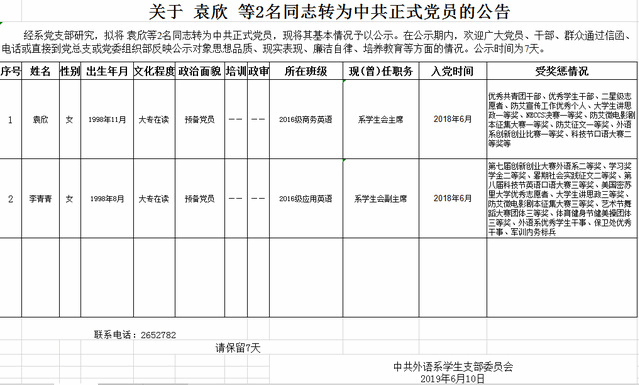关于 袁欣 等2名同志转为中共正式党员的公告