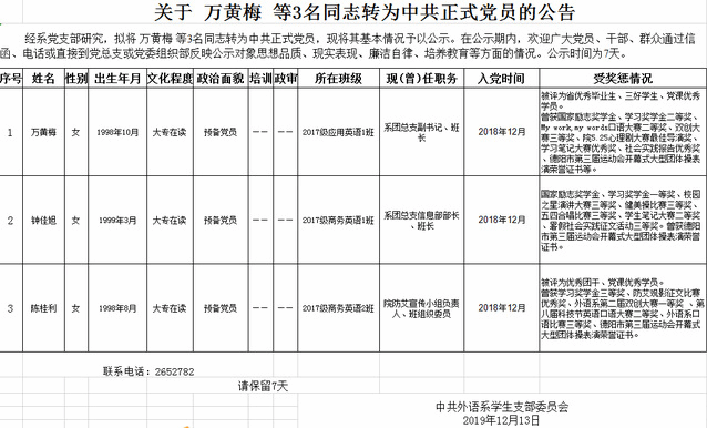 关于 万黄梅 等3名同志转为中共正式党员的公告