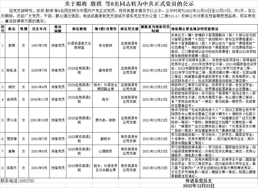 关于拟将 殷琪 等8名同志转为中共正式党员的公示