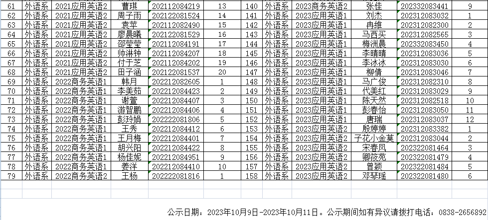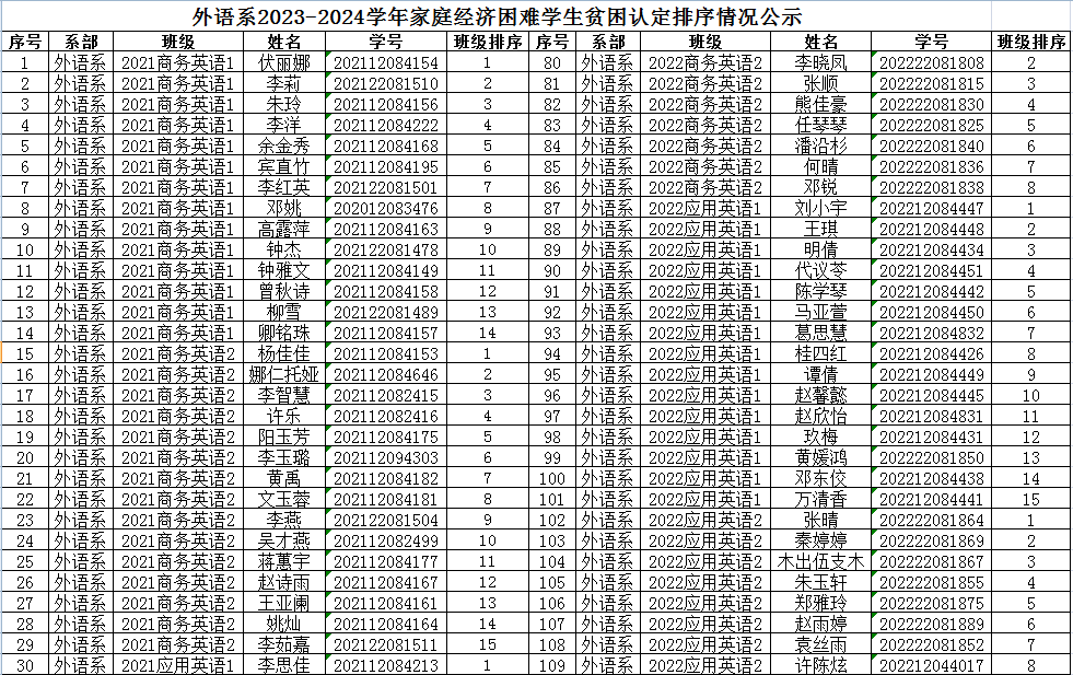 外语系2023-2024学年家庭经济困难学生认定情况公示