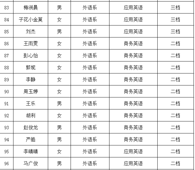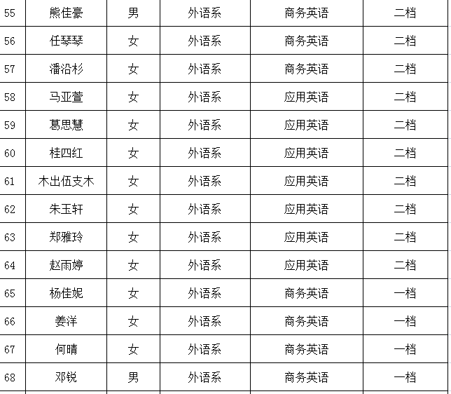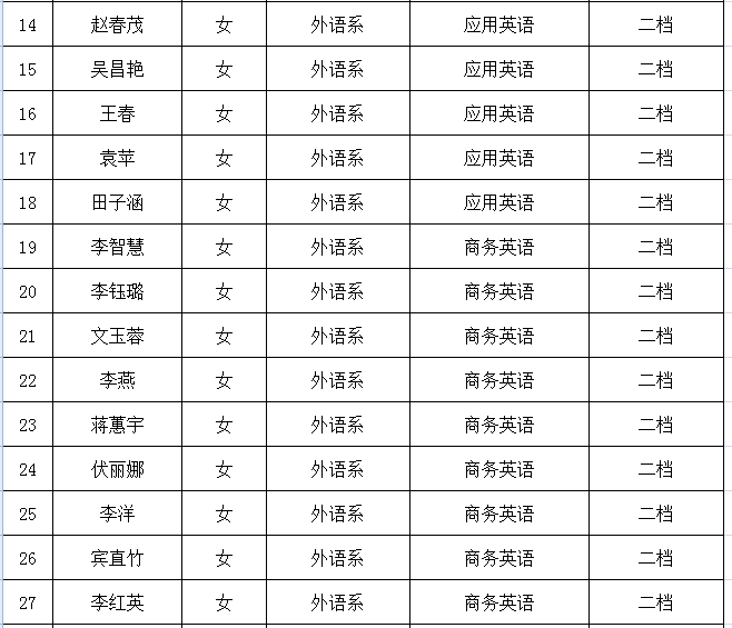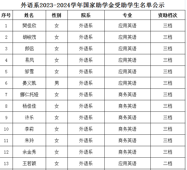 外语系2023年国家助学金受助学生名单公示