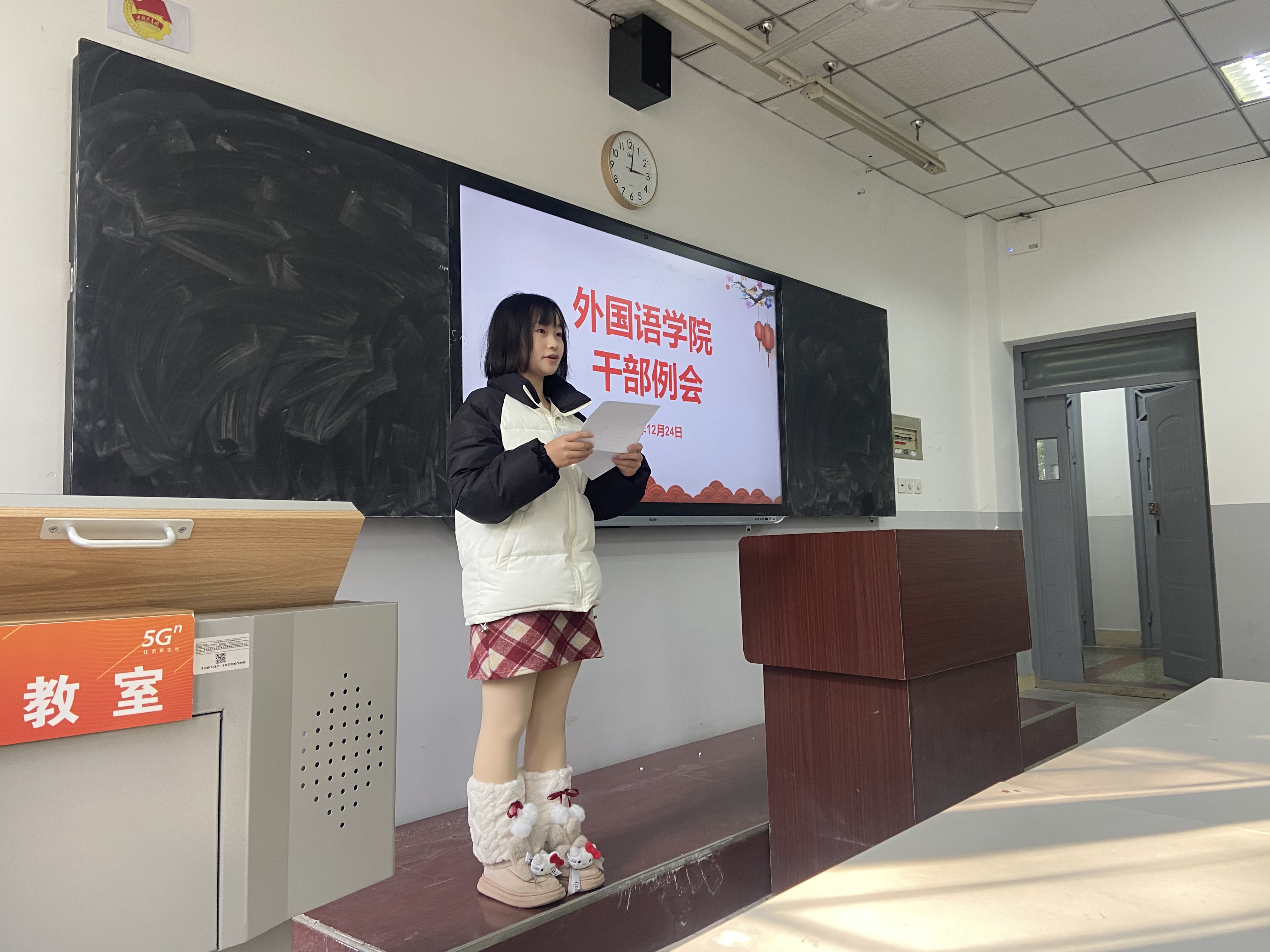 2024 年 12 月 24 日下午 3点,外国语学院学期干部例会准时举行。此次会议旨在总结学期学生干部工作、促进学生干部内部交流协作并梳理优化工作制度。