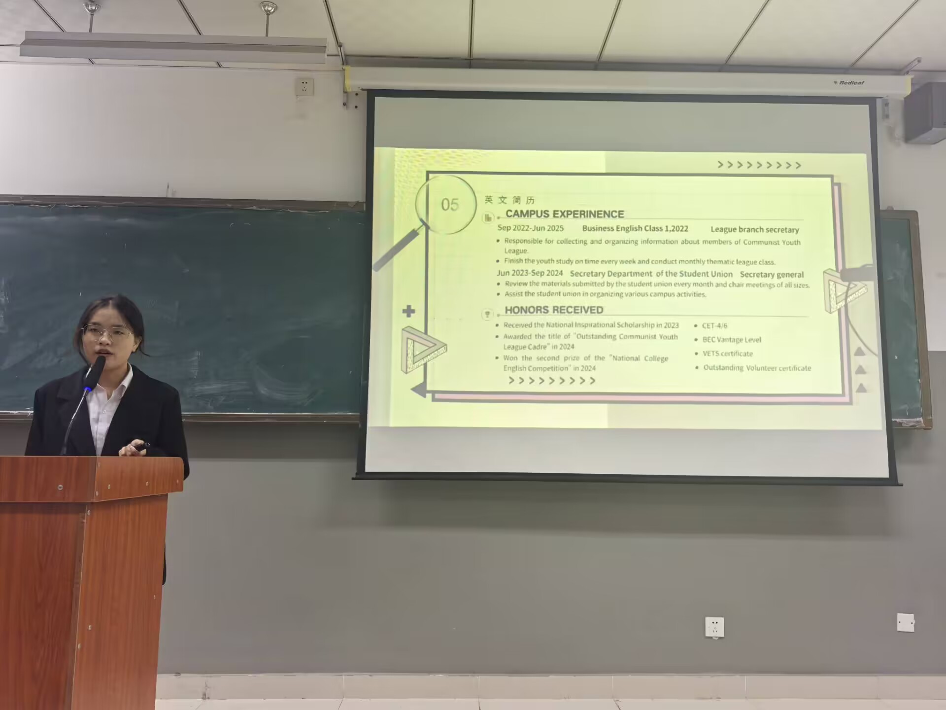 9月29日下午16:30,“2024年外国语学院学生求职简历制作大赛”决赛在6B210教室隆重举办。此次大赛旨在帮助学生提升简历撰写技巧,提升就业能力,通过中英文简历制作和双语答辩的方式提升学院学生的语言应用能力,达到以赛促学、以赛促就的目的。学院高琦副书记(主持工作)、学工组长邓锋老师、专业导师朱英教授、罗建芳副教授及蒋显伦教授受邀担任本次大赛决赛的评委。