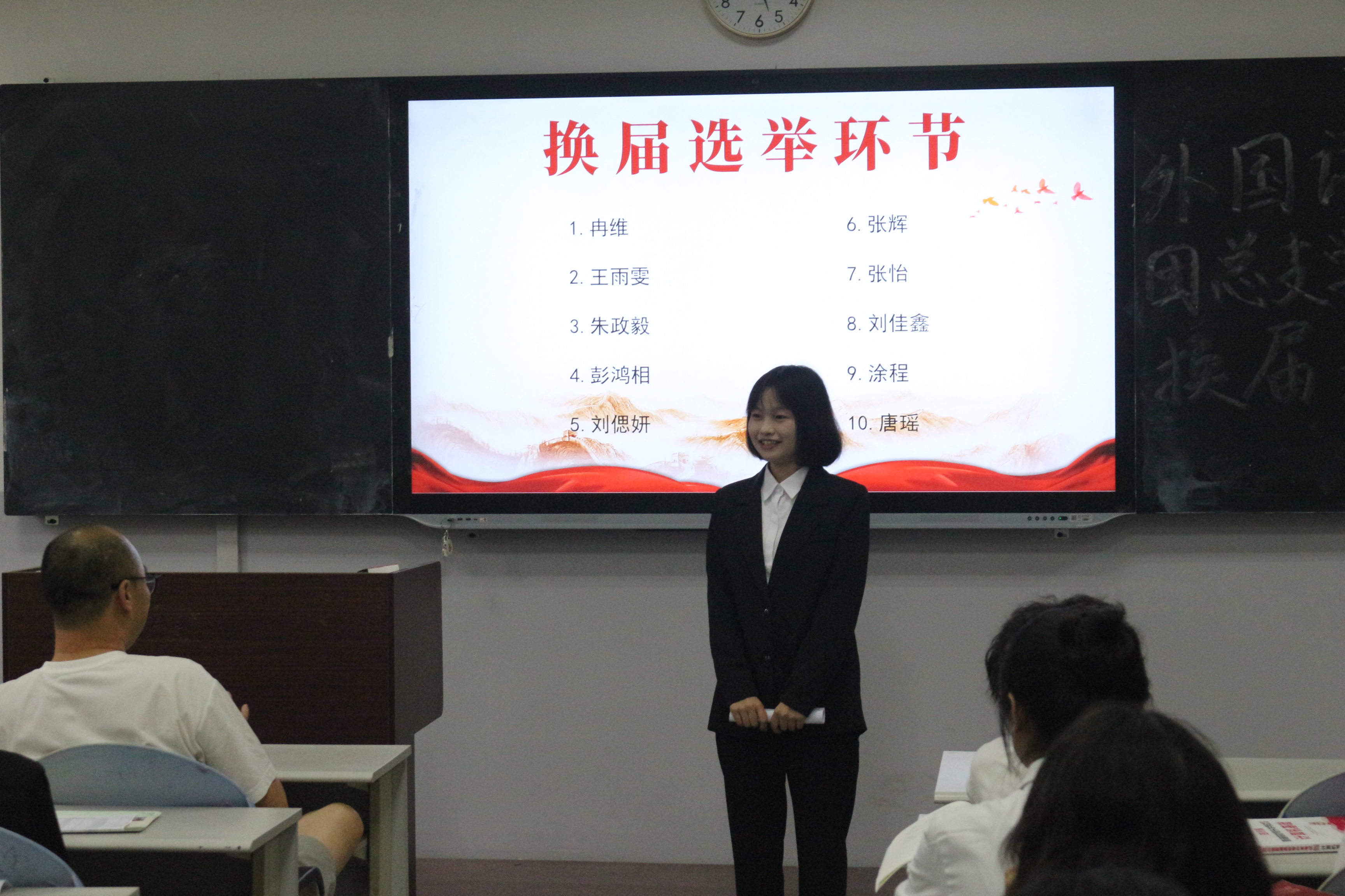 9月24日下午4时30分,外国语学院团总支学生分会于3b201举行年度换届大会,学院团总支书记孙宁老师、学工组长邓老师以及 2022 级学生会主席团代表参加本次大会。