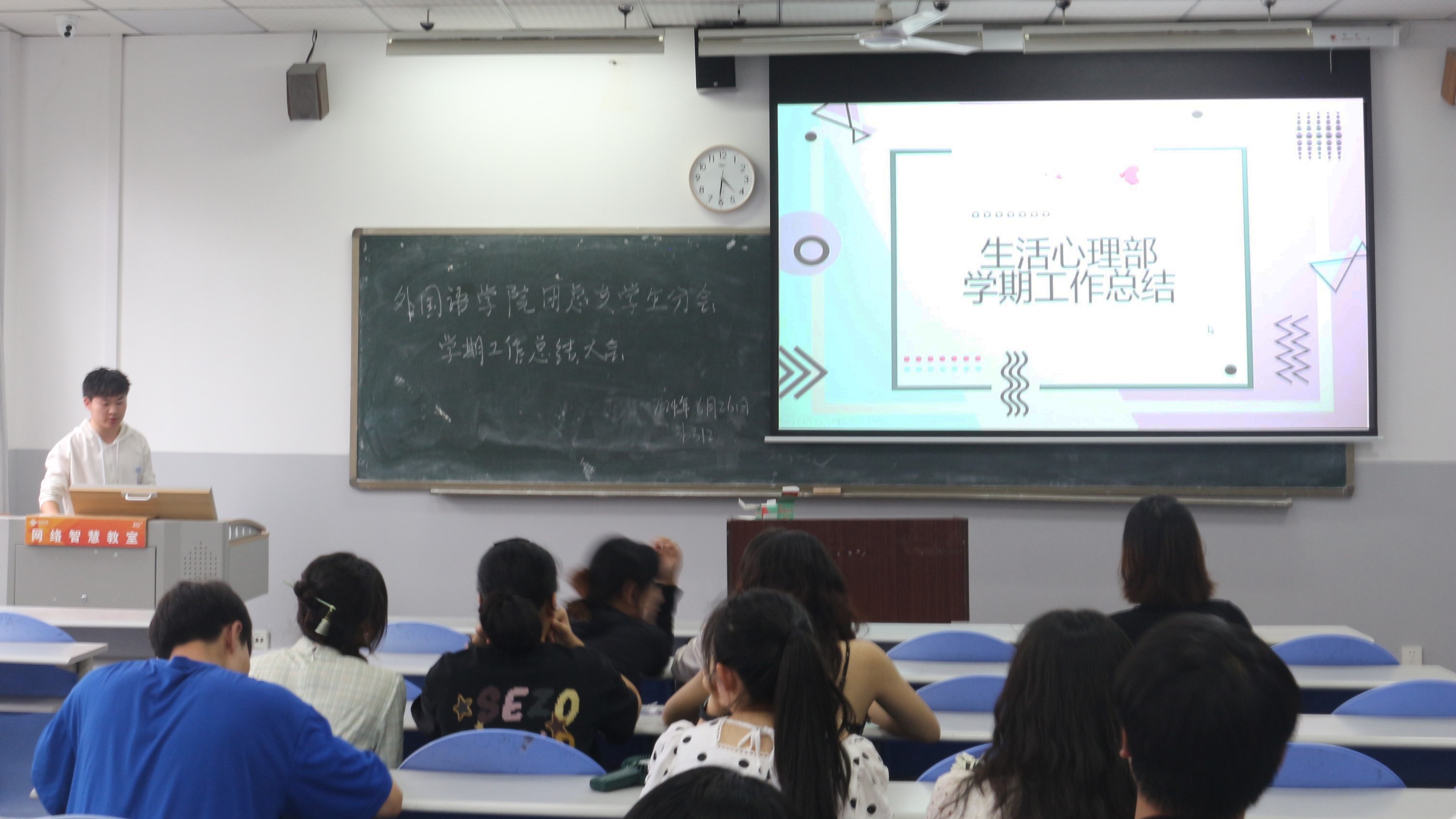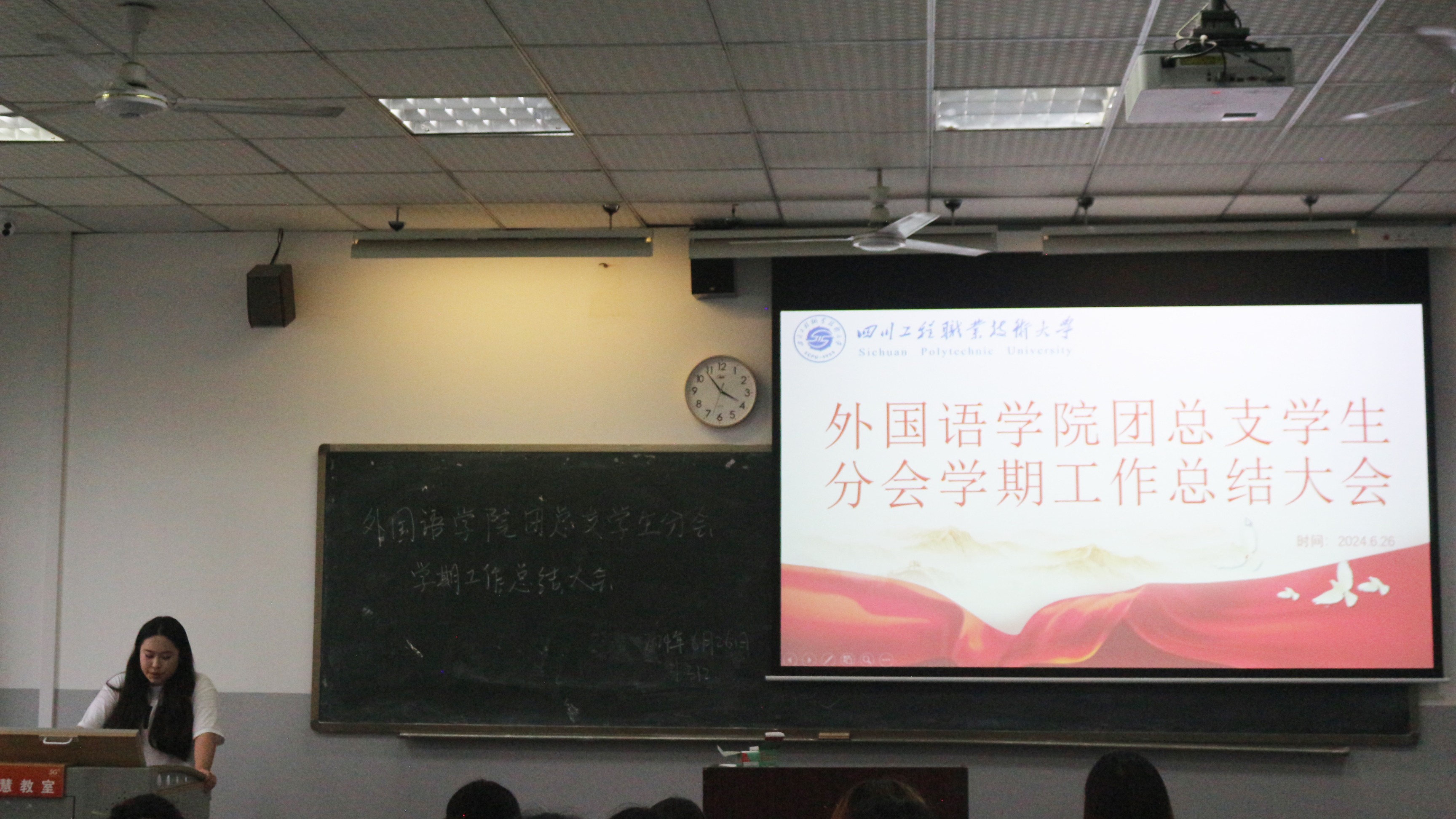 为总结本学期工作成果,进一步提升团总支学生分会工作水平,626日,外国语学院在三教3B312召开2023-2024第二学期团总支学生分会工作总结大会,各部门针对本学期主要工作任务做工作汇报。本次工作总结大会由外国语学院团总支书记孙宁主持,学院11个部门参加本次总结大会。