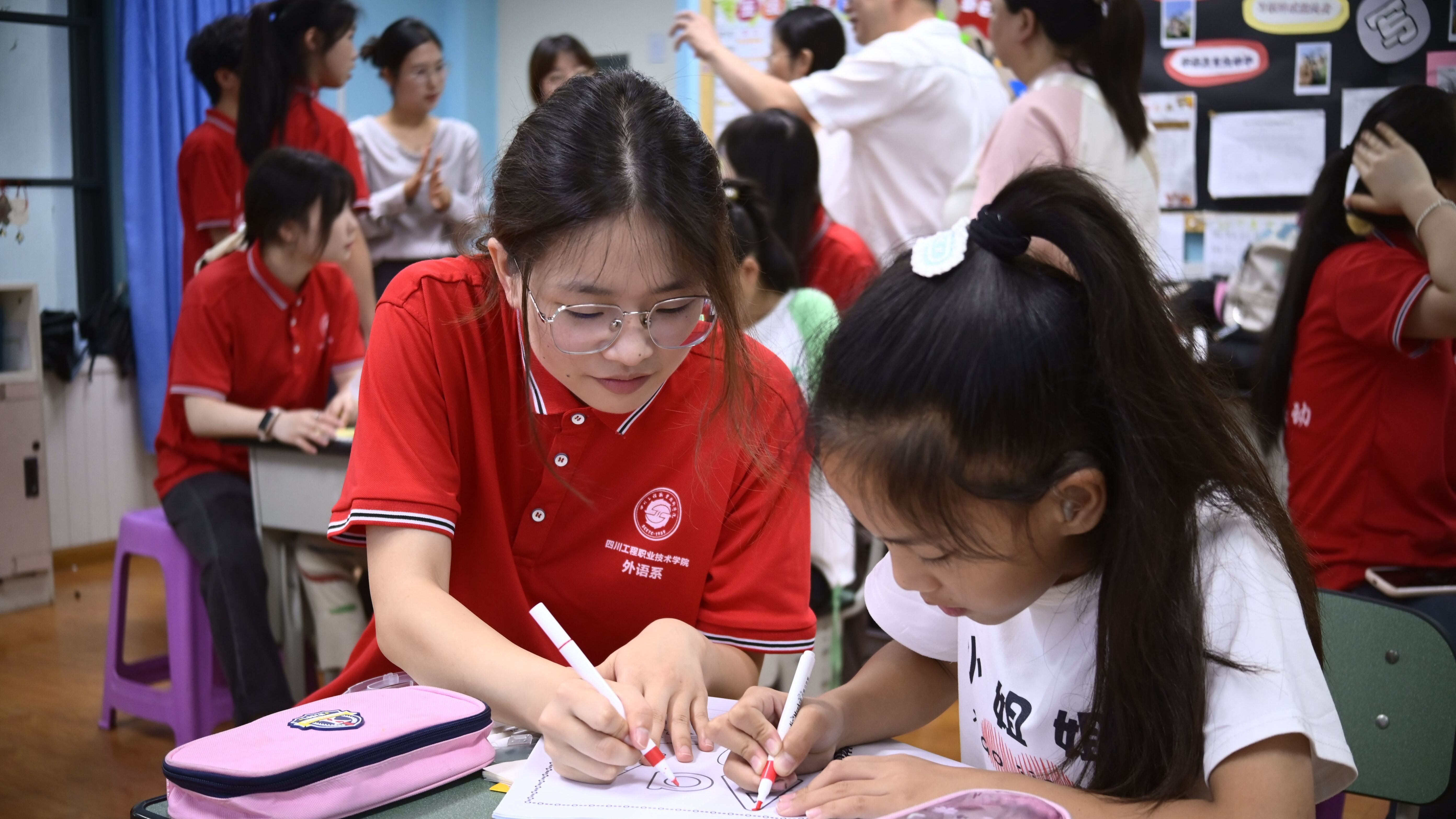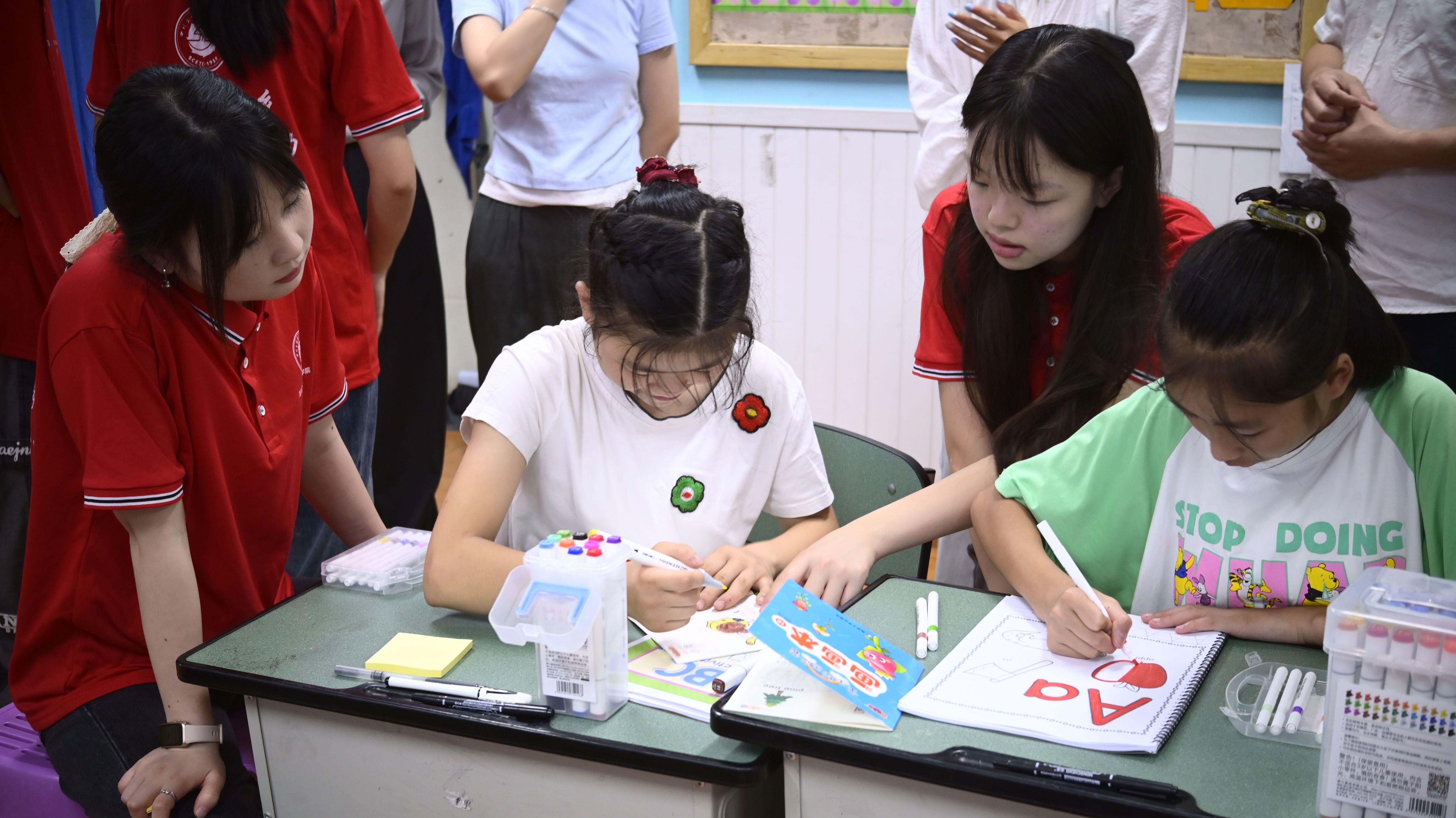 此次“三下乡”服务班级为特殊教育学校的聋教班,志愿者们精心准备了一节别开生面的字母课。他们用生动有趣的方式,通过融入英式手语、游戏、魔术等环节,帮助孩子们提高课堂兴趣,理解和掌握字母的发音与书写。孩子们眼神专注、积极回应。