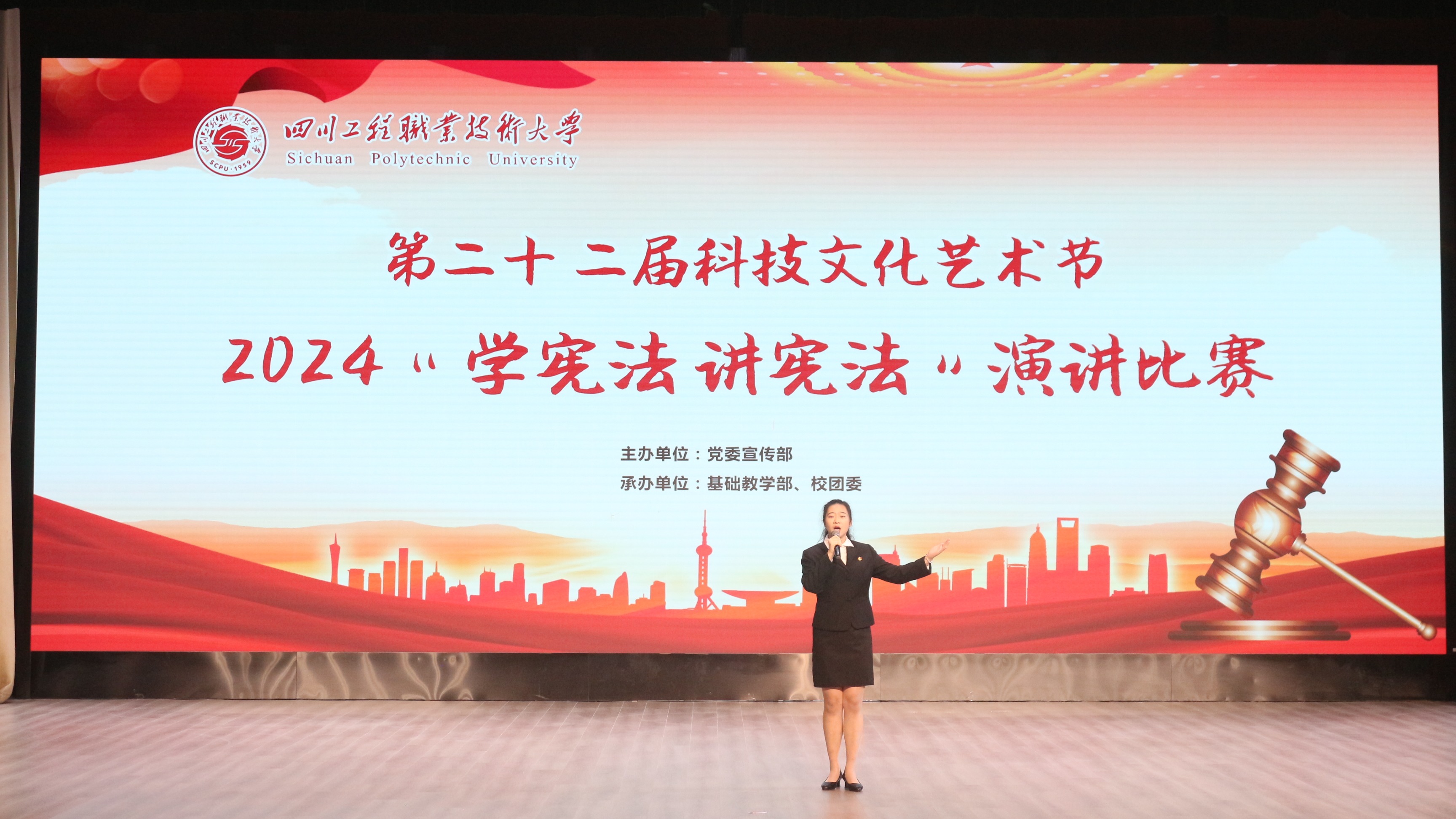为贯彻落实党的二十大精神,弘扬宪法精神,增强大学生对宪法相关知识的了解,培养其法治意识和责任感,同时推进校园法治文化建设,我校于411日晚19:30在二教演播厅开展第二十二届科技文化艺术节“学宪法 讲宪法”演讲大赛。2023商务英语1班李冰纯同学以作品《宪法在心,法治在行》代表外语系参赛,荣获三等奖的佳绩。