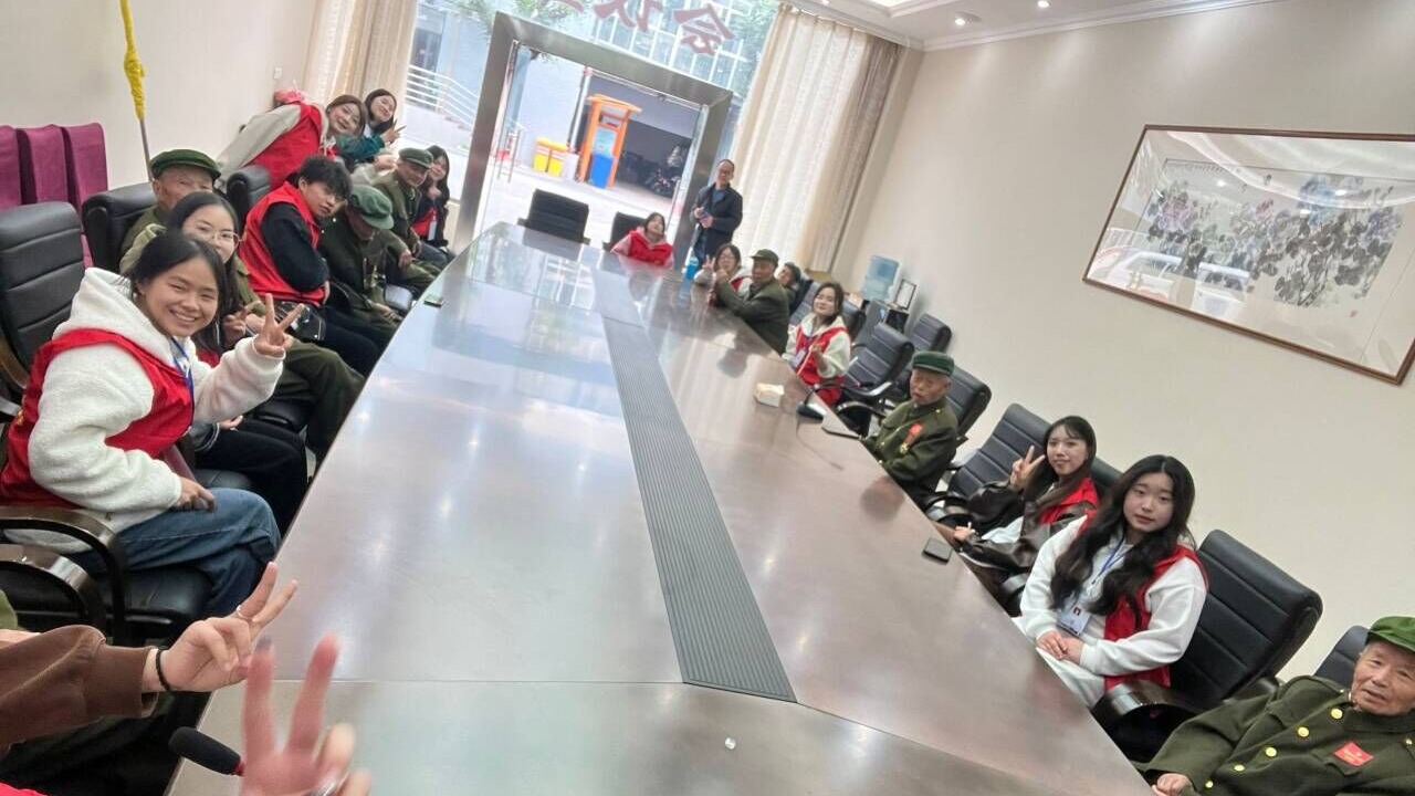 下午一点半左右志愿者们就已经提前来到了德阳市光荣院,整齐有序地在光荣院负责人的指导下进入了会议室等待退伍老兵起床。在等待的过程中,志愿者们认真准备活动时需要的东西,不懂的地方及时询问老师,真正做到井然有序。在慰问中,志愿者对退伍老兵们的生活现状和身体近况进行关心询问,并表示感谢他们的勇于拼搏和无私奉献,为后辈青年们起到了模范作用。其中两位退伍老兵还参与了抗美援朝战争,他们为志愿者们讲述了当年那些在枪林弹雨中战斗的故事。退伍老兵们的英勇事迹和杰出贡献让志愿者们极为敬佩,志愿者们也用歌声和朗诵来表达他们的敬意。林爷爷也大声唱起红歌和毛泽东的诗词,回报志愿者们的关爱,并对志愿者们寄予了殷切希望。