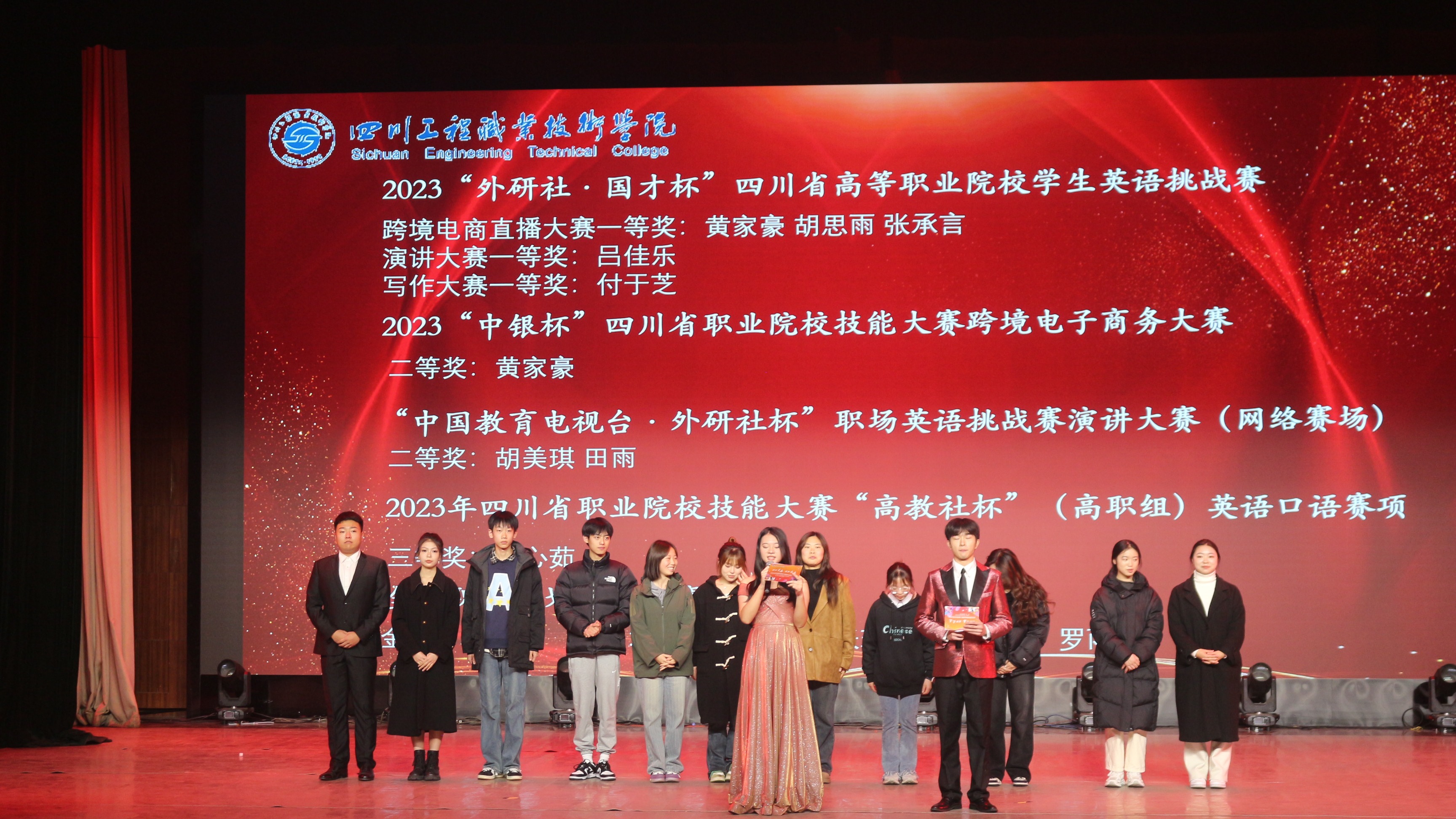 此外,本次晚会也对2022/2023年度外语系优秀学生进行了表彰,其中包括国家奖学金、国家励志奖学金、优秀学生干部、三好学生、学习标兵、四川省高等职业院校学生英语挑战赛、技能大赛等奖项,对学生们的努力与付出给予肯定,同时希望他们在今后的学习生涯中能够继续熠熠生辉,再创佳绩。