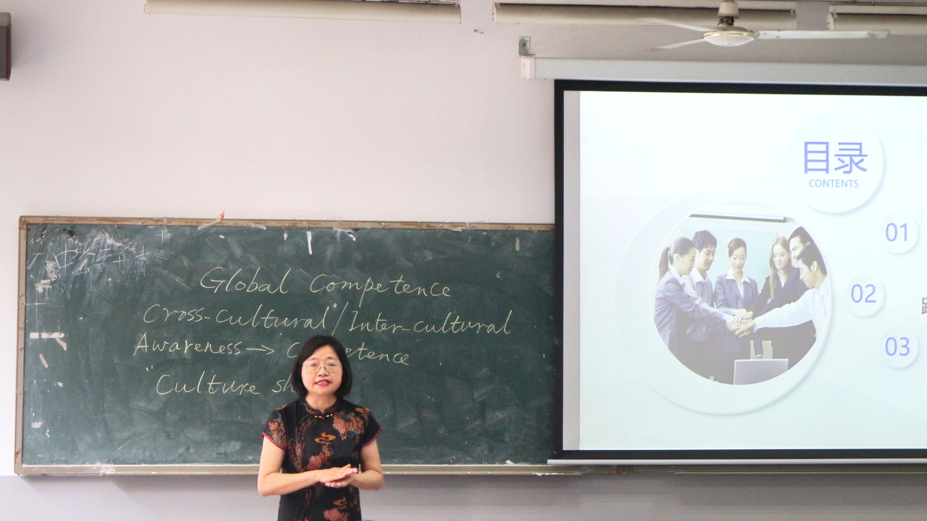 苏玉仙教授围绕当今国际国内形势,用通俗易懂的方式告诉大家“何为跨文化交际能力,我们又应如何面对和应对世界经济的全球化和文化的多元化”。同时,苏教授勉励同行们需谨记习近平总书记的嘱托,坚持立德树人根本任务,不断改革创新、奋发作为、追求卓越,努力为国家参与全球治理培养大量专业型人才,为文明互鉴、文化交流贡献外语人的力量。