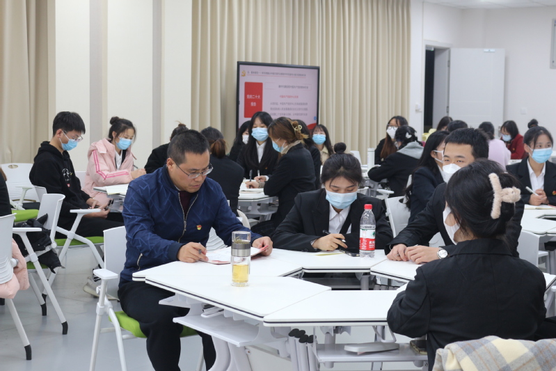 静部长从党的二十大战略定位、大会主题、实践基础等方面对党的二十大报告内容进行宣讲,重点围绕马克思主义的人民立场、文化自信自强、马克思主义中国化时代化、中国式现代化等内容给师生代表作详细讲解。最后,王静部长引用习近平总书记对广大青年的寄语“广大青年要坚定不移听党话、跟党走,怀抱梦想又脚踏实地,敢想敢为又善作善成”,鼓励青年学生不负时代、不负人民,立志做一个能吃苦、肯奋斗的新时代好青年!