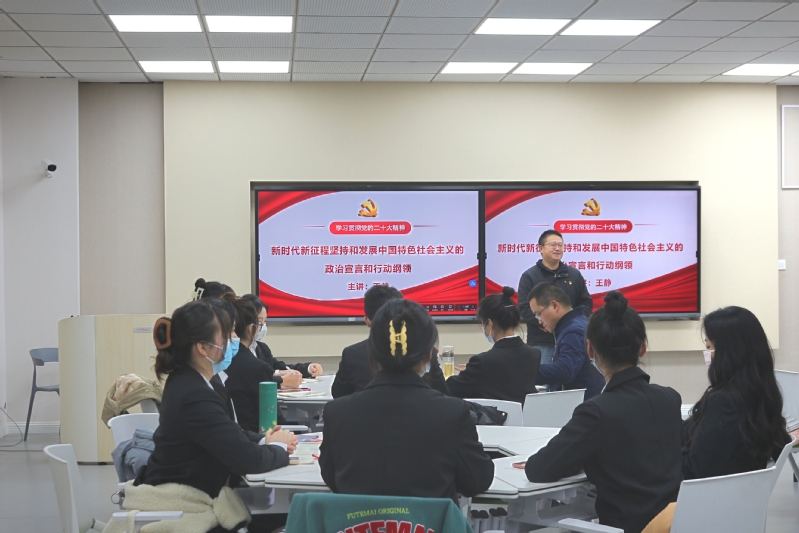 11月29日下午4:30,外语系党总支开展学习贯彻“党的二十大精神”宣讲活动。外语系联系领导、学校党委常委、宣传部部长王静教授为师生代表作题为《新时代新征程坚持和发展中国特色社会主义的政治宣言和行动纲领》主旨报告外语系主任苏玉仙教授、部分师生党员代表和入党积极分子参加此次宣讲报告,宣讲活动由外语系党总支书记张志友主持