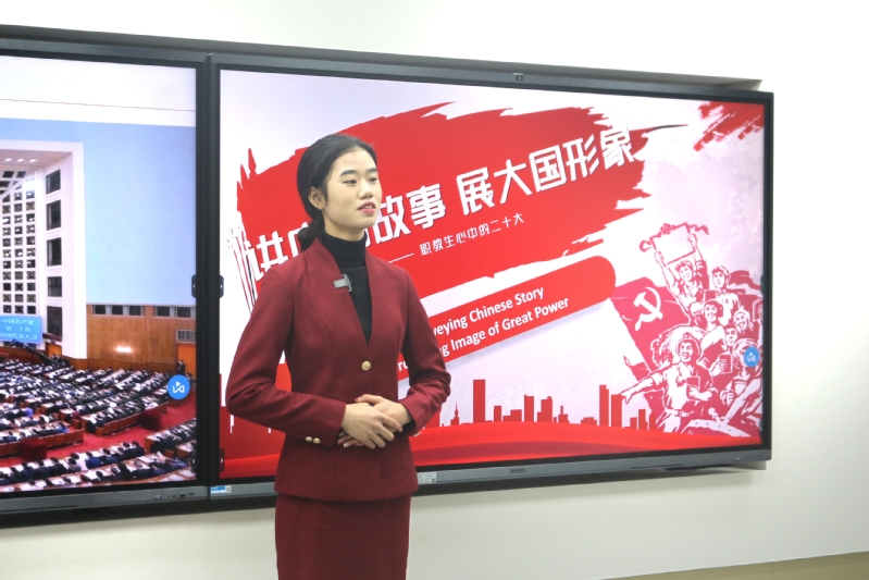 在此次活动中,外语系的四位同学黄家豪、李松桦、李莉、宾直竹结合自身经历,从不同角度讲述了职教生眼中的二十大故事。无论是矢志投身国防事业,亦或是立足祖国优秀传统文化,都无一例外地展现了我国青年的自信与自豪。聚焦党的二十大,用青年的语言,讲述青年眼中的二十大精神故事,这是高亢激越、掷地有声的青年宣言。
