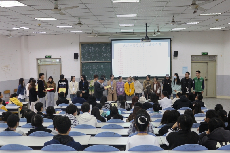 为表彰2020级外语系学生会团总支学生干部的辛勤工作,鼓励2021级外语系学生会团总支新任干部奋勇向前,11月5日下午16:20,外语系在3A109教室举行2022届学生会团总支换届大会。外语系党总支书记张志友、团总支书记邓锋、2021级辅导员田媛媛参加了此次换届大会。