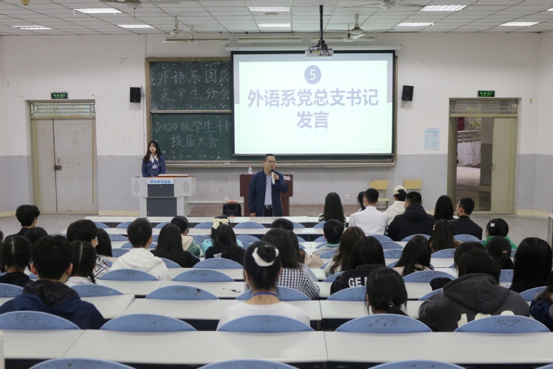 大会首先由外语系党总支书记张志友、团总支书记邓锋分别为2020级主席团成员和学生会团总支各部门部长颁发聘书。随后由2020级学生会主席张航代表2020级主席团从自身的改变、对部门的认知以及对学生会的期望几方面做了发言。新任主席团主席也表示将不负老师和同学的信任与期望,和其他主席团成员一起带领外语系团结协作、砥砺前行!在活动的最后,党总支书记张志友对本次大会做了意义深刻的总结,提出了做事、做人、树形象的三个要求,并希望将外语系学生会团总支的精细化工作风格发扬光大。他表示对学生会未来的工作充满期待,希望大家扎扎实实地开展工作,用行动来证明自己的能力,用行动来为外语系添光添彩!