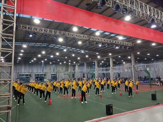 为进一步弘扬“自主,强身,健体”的体育精神,激发学生的运动热情,丰富同学们的校园文化生活,营造生动和谐、朝气蓬勃的校园氛围,外语系于2022年5月17日晚7点在学校体育馆参加了广播体操比赛。全校共有九个系的代表队参加比赛,本次外语系选派了50多名同学组成方队,由文涵老师带队参赛。