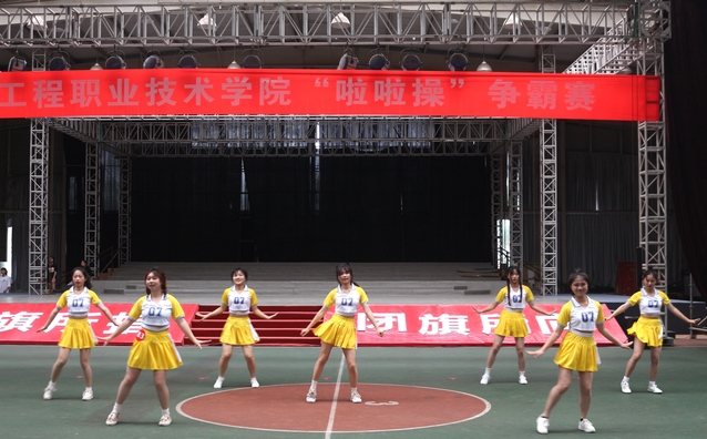 比赛在下午两点正式开始,由各代表队按照事先抽签所定顺序,依次入场。参赛队员们身着漂亮的服装,动作整齐划一,充分展现了当代大学生的青春与活力。外语系的队员们身着动感服装闪亮登场,伴着优美的音乐,开场震惊全场。队员们随着节拍,身姿律动,如跳越的焰火,全场观众为之震撼。为了能在“啦啦操”比赛中取得较好的成绩,队员们不分早晚,不惧炎热,刻苦训练。最终,她们的表演换来了阵阵喝彩,带给观众极好的视听享受。经过三轮的比赛,此次外语系的三支代表队均获得不俗成绩,一队获得全校一等奖,另外两支队伍均获得二等奖。
