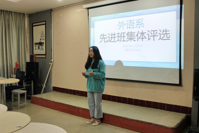 11月4日下午16:00,在二教语言中心多媒体教室外语系开展了2020/2021学年先进班集体评选活动,参与本次评选活动的人员有:外语系党总支书记王春焱老师、各班班级导师和辅导员老师、各班学生代表和申报参加评选的大二、大三班级代表。