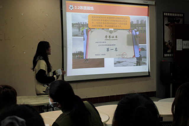 在评选中,各班代表充分利用PPT和视频相结合的方法,在简短的时间内图文并茂地展示了本班组织建设、班风建设、学风建设、文化建设、宿舍文明建设和创新等多方面取得的优异成果,彰显出班级团结向上的班风,深厚的班级文化底蕴,以及强大的班级凝聚力。经各班班级导师和辅导员组成的评委会投票评选出2020级应用英语二班为学年先进班级,推荐参加学校先进班级评选。