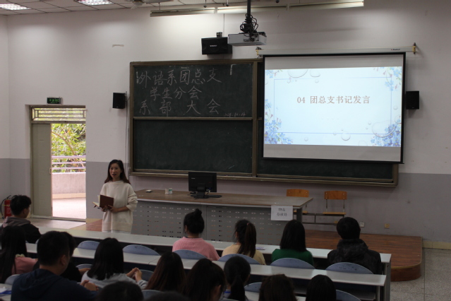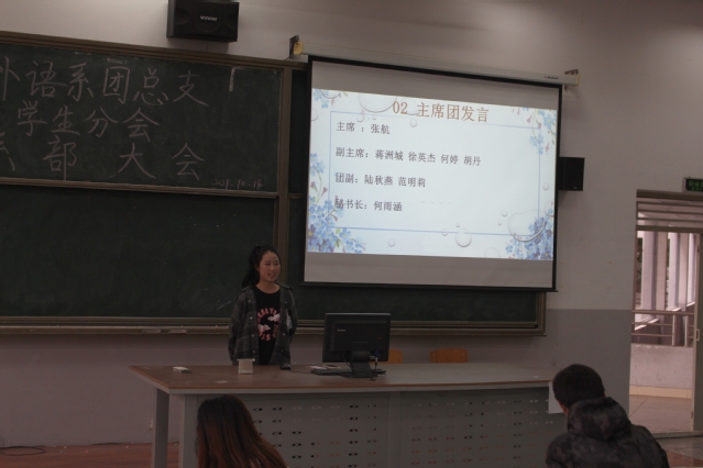 生意盎然的十月,为了更好地推动外语系团总支学生分会各部门工作发展,总结和回顾我系学生分会近一个月的工作收获与不足,外语系团总支学生分会于10月14日下午16:00在三教召开本学期首次大会。出席本次大会的人员有:系团总支书记唐蕊老师、主席团及各部门干部与大一干事。