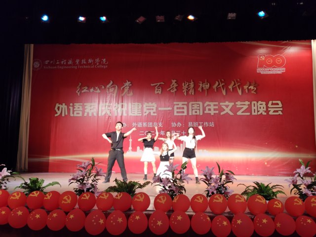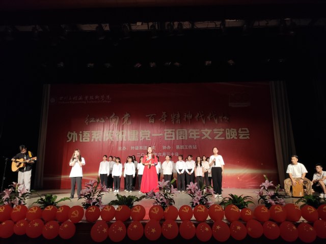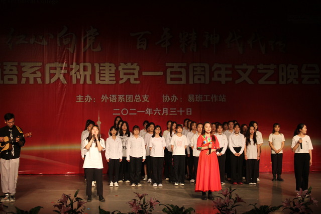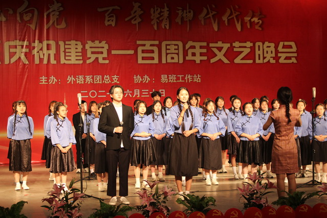 颂歌献给党,启航新征程。6月30日晚,由外语系团总支主办的“红心向党 百年精神代代传”庆祝建党100周年文艺晚会在二教演播厅精彩上演。外语系领导班子成员、教师、班级导师、辅导员及全体学生现场观看了演出。