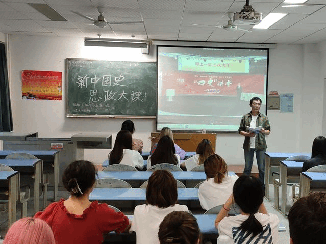 为加深同学们对党史的认识,激发同学们对党和国家的热爱之情,外语系组织各班于5月16日星期日晚同上“四史”思政大课。
