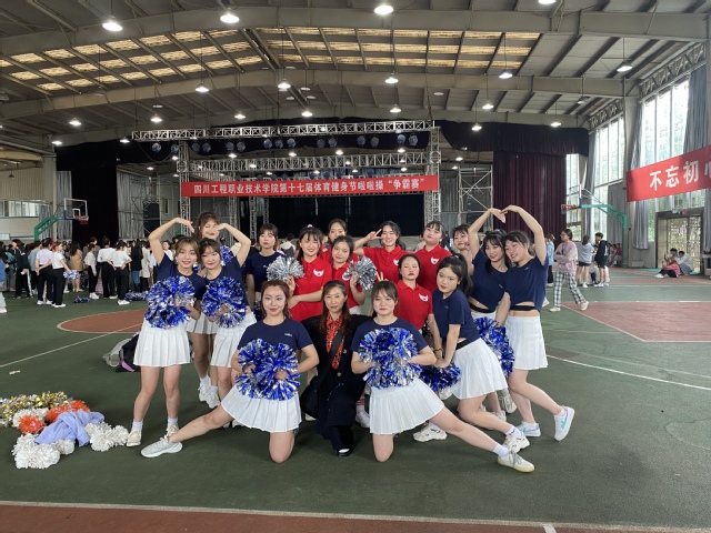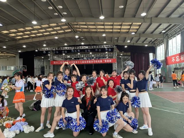 4月13日下午,校体育馆内,第十七届体育健身节啦啦操争霸赛正在如火如荼的进行。我系两支战队“TFG战队”和“铁娘子战队”的队员身着绚丽的服装,排着整齐的队伍闪亮登台。伴随动感的音乐,队员们身姿律动、动作优美犹如跳动的火焰,全场观众为之震撼。