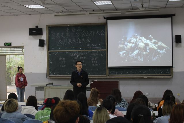 4月1日下午,外语系团总支学生分会系部大会及月末总结大会在三教3A109召开。外语系党总支书记王春焱、团总支书记唐蕊、辅导员姜雯玉老师,学生分会主席团成员及学生分会全体干事同学参加会议。