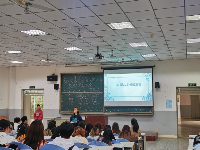 大会最后一项,由唐老师发言。她指出了各部门在本学期工作亮点和存在的不足,希望在保持优秀的基础上,反思并改正不足。她鼓励同学们多与老师沟通,遇到问题,多提问,多请教,师生协手一起完成好任务。唐老师还对“五四”合唱比赛和体育健身节等活动做出安排。(文/图 外语系团总支信息部 陈慧琳)