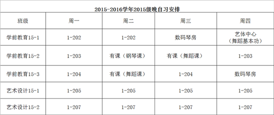 2015-2016学年2015级晚自习安排