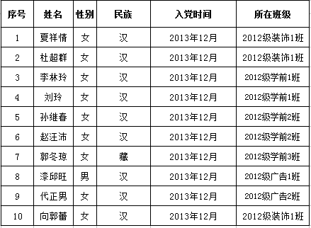 艺术系党总支党员发展(转正)审批公告(2014年12月)