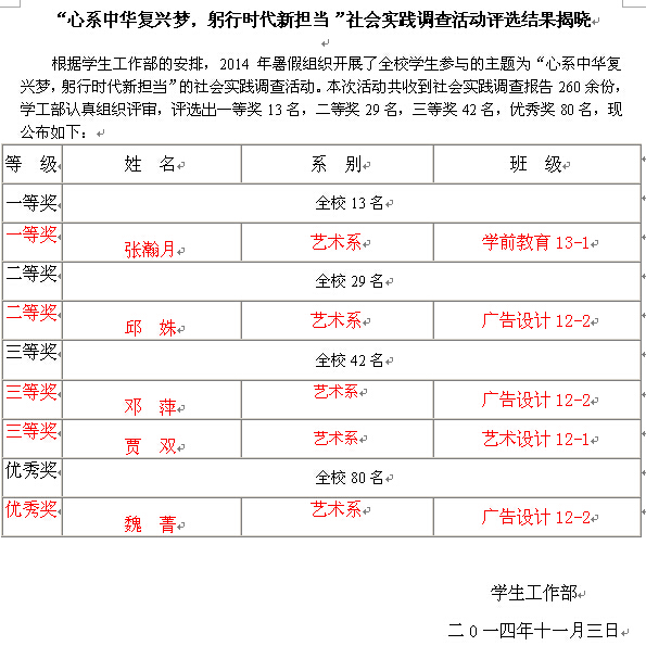 “心系中华复兴梦,躬行时代新担当”社会调查活动评选结果揭晓