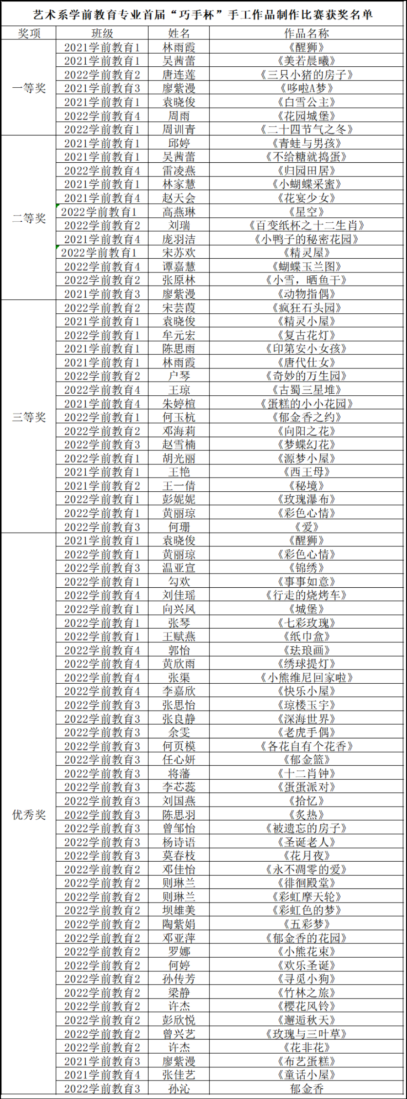 艺术系学前教育专业首届“巧手杯”手工作品制作比赛获奖名单公示