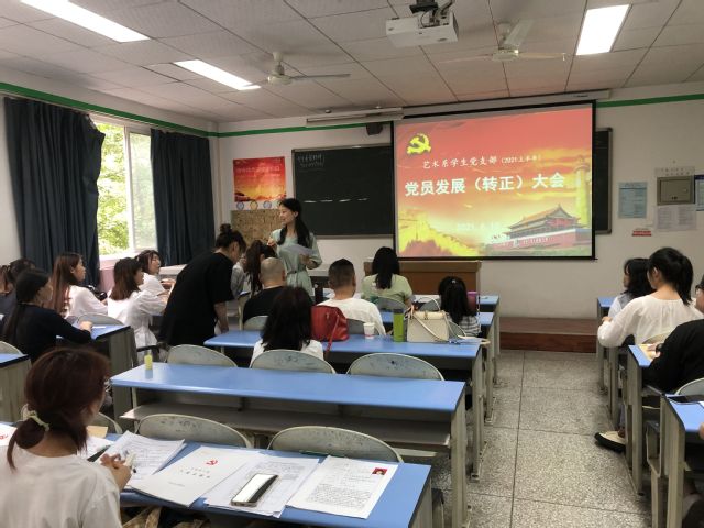 2021年6月10日,艺术系学生党支部组织召开党员大会,讨论了尹莉等17名同志的入党问题和曹越等5名同志的转正问题。经大会表决,一致同意接收尹莉等17名同志为中共预备党员,一致同意曹越等5名同志按期转正。(图/文 艺术系党总支)