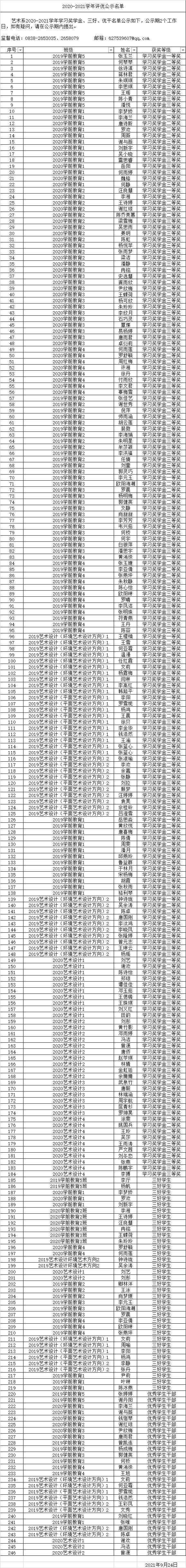 艺术系2020-2021学年评优名单公示