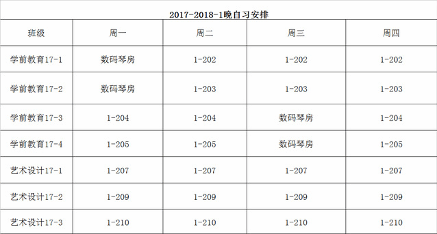 2017-2018-1晚自习安排