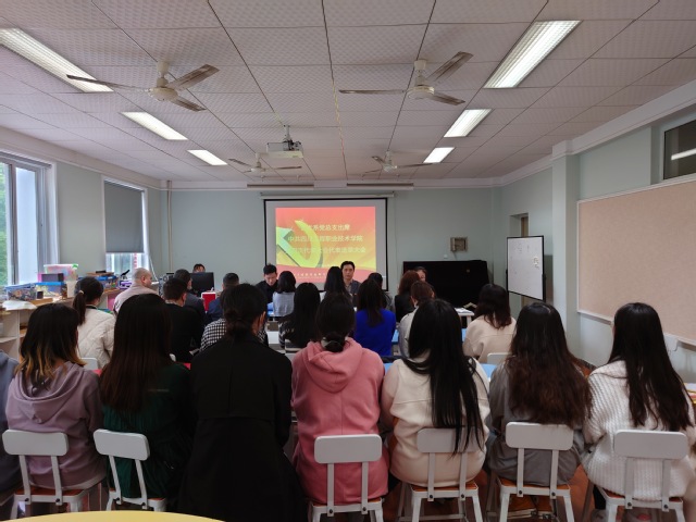 2022年4月20日下午,艺术系党总支在1-307召开选举出席学校第四次党代会代表党员大会。艺术系全体党员参加了大会,会议由党总支副书记赵铁柱主持。