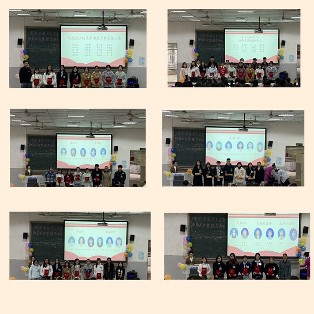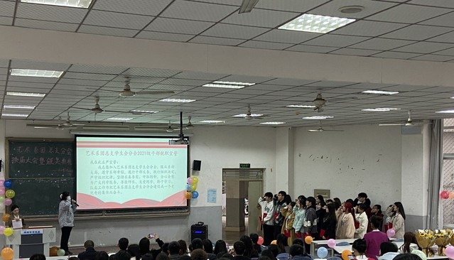 长江后浪推前浪,浮世新人换旧人。大会进入展望未来篇。在上一届学生会干部的带领下,涌现出一批优秀的学生干部,通过层层选拔产生了新一届团总支学生会分会主要干部成员。由各位老师为21级学生会干部颁发聘书,由20级各部门部长为新一届学生干部佩戴工作胸牌。伴随着掌声,同学们满怀激情和对未来的憧憬。接下来便是由黎小苹主席带领2021级干部进行庄严的就职宣誓。随后大会为学生会优秀干事、暑期“三下乡”社会实践先进个人以及“青年大学习”先进集体进行表彰。大会最后由艺术系党总支副书记(主持工作)杨晓蕾书记对上一届学生会干部表示感谢和祝福,为新一届学生干部提出要求和寄语。