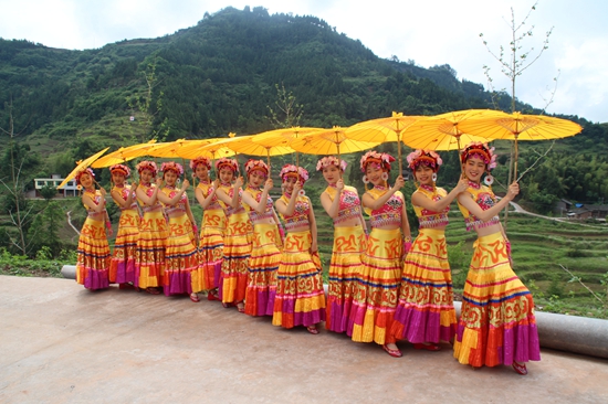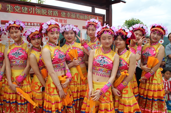 5月20日 ,按照院党委安排,艺术系党总支书记王静、团委曾静老师率学院艺术团一行16人前往达州市开江县宝石乡程家沟村,参加由省经信委组织的2016年“流动舞台进基层·精准扶贫在行动”启动仪式文化惠民演出。省经信委副巡视员鲁平成、省经信委教育培训处副处长张军以及开江县相关领导等出席了此次启动仪式,并观看表演。艺术团13名同学中有12名同学均来自艺术系。