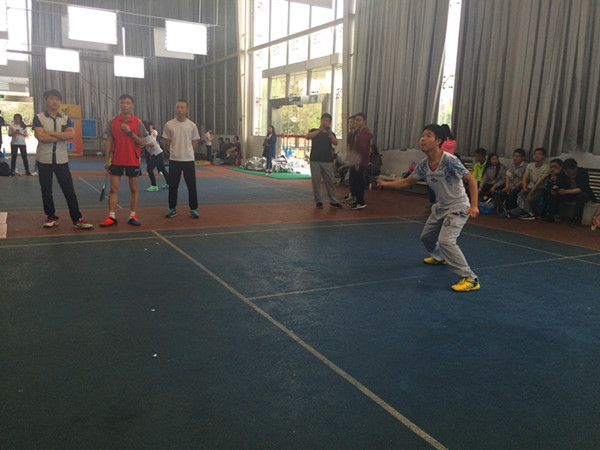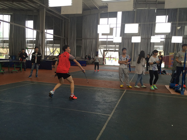 在4月5日下午2点30分举行的羽毛球比赛实行男女单打,各队员都积极努力比赛,发挥出最大潜力,比赛十分激烈,各系同学积极比赛,热情高涨。前来观看的同学为他们加油鼓劲。比赛双方你追我赶,毫不怠慢,羽毛球队员之间团结友爱的精神感动了在场的每一位,他们用自己的激情和汗水书写着对运动和生活的热爱,体现各系的凝聚力。 比赛在如火如荼的进行着,最激动人心的还数艺术系和车辆系的男子单打比赛,赛事十分激烈,双方选手水平互不相上,难分伯仲。最终艺术系已3:2的成绩胜于车辆系!其次是艺术系和经管系的女子单打,我系女生以3:0的成绩遥遥领先于经管系!