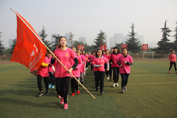 天气晴朗,阳光明媚,但偶尔吹来的风依然能令人感到冬天的寒冷,可这也冷却不了大家的参赛热情。比赛还未开始,各系参赛队伍已经到达田径场,各系的系旗伫立于凛冽的寒风中猎猎作响。运动员们个个身姿矫健,英姿飒爽,满怀激情地做热身运动和赛前准备。在结束了一系列的赛前准备和注意事项之后,最激动人心的冬季长跑比赛马上就要开始了。 比赛是由各系为单位从田径场出发,绕学校跑一圈最终回到田径场。运动员们顶着寒风迎难而上、把握节奏、坚持不懈,每一队都是井然有序,用口号展示着青春的激情与运动的活力。