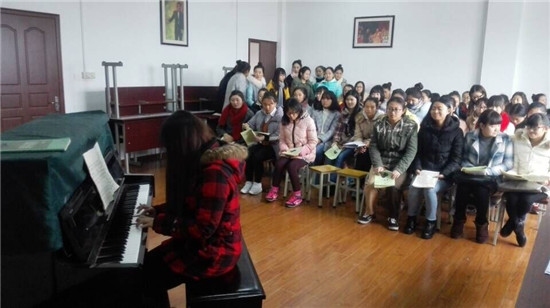 为了进一步适应市场需求,学生的专业学习更接地气,音乐舞蹈教研室近年在教学、综合实践,专业考试方面都做了些有益的尝试与改革,今年的声乐期末考试可谓内容丰富花样繁多,除了演唱传统的艺术歌曲,还增加幼儿歌曲表演唱,小组合,二重唱,并要求学生自制道具,突破了以前单一的考试模式,学生在准备考试的过程中锻炼了动手能力对自己的考试曲目要进行唱 跳 编排等综合思考,考试中一个年级三个班的同学相互观摩相互学习,同学们积极性很高,也非常认同这样的考试方式在 与此同时学习兴趣得到提高。