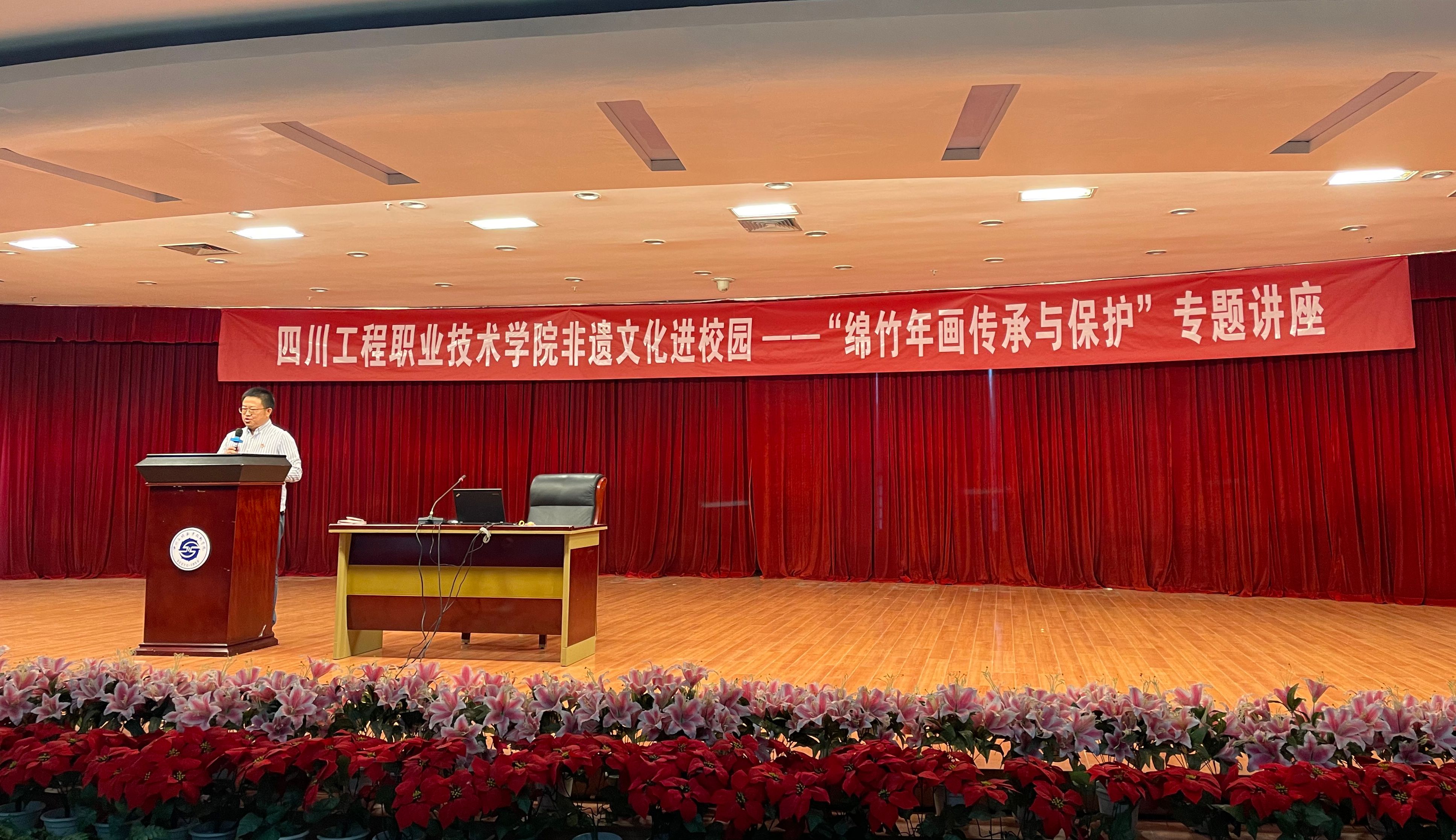 随后,艺术系特别邀请绵竹年画代表性传承人张琴开展题为《绵竹年画传承与保护》的专题讲座,张琴老师从绵竹传统木版年画的历史、制作工艺浅谈、年画作品赏析等方面展开了详细的论述,为大家梳理了绵竹年画的历史渊源以及艺术特色,让全体师生感受到非遗文化之美,加深了大家对国家首批非遗项目绵竹年画认识和了解。