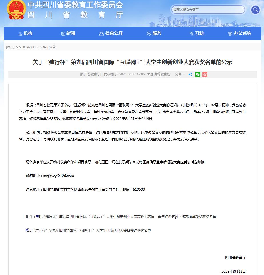 8月31日,四川省教育厅发布了“建行杯”第九届四川省国际“互联网+”大学生创新创业大赛决赛(职教赛道)获奖公示名单,艺术系《绘“境”——开创手绘文创新境域》项目在大赛中荣获银奖,这是我系参加历届“互联网+”取得的最好成绩。此“双创”项目是由艺术系谢建华老师、邓斌老师指导本系在校学生完成的,充分展示了艺术系创新创业教育成果。